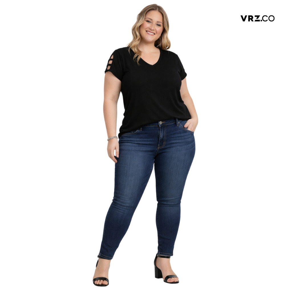 Blusa Plus Size T-shirt Feminina Decote V Com Detalhe Nas Mangas 0201 ✅ Sobre o Produto: ✔ Tamanhos Disponíveis: G1 / G2 / G3 / G4 ✔ Modelo: T-shirt feminina plus size com decote V ✔ Detalhe: Viés nas mangas e manga curta ✔ Tecido: Malha Viscolycra (96% Viscose + 4% Elastano) ✔ Estilo: Liso, moderno e versátil ✔ Cores disponíveis: 6 opções (podem variar conforme a tela do dispositivo) ✔ Caimento confortável, com elastano e excelente mobilidade ✅Escolha na Variação: ✔ Violeta ✔ Preto ✔ Marinho ✔ Vermelho Cayenne ✔ Vermelho Vinho ✔ Verde Pistache ✅ Diferenciais do Nosso Produto: ✔ Modelagem plus size confortável e elegante ✔ Tecido macio, leve e com excelente caimento ✔ Estica no corpo sem marcar ✔ Design moderno com recorte que valoriza o colo ✔ Ideal para usar no dia a dia, trabalho ou ocasiões casuais ✔ Fabricação nacional com mais de 20 anos de expertise ✔ Marca especializada em moda plus size feminina ✅ Benefícios: ✔ Conforto e liberdade de movimento ✔ Visual moderno e estiloso sem abrir mão do bem-estar ✔ Versátil para diferentes combinações de look ✔ Ideal para todas as estações ✔ Peça fácil de vestir e combinar com calças, shorts ou saias ✔ Valoriza o corpo com caimento alinhado e elegante ✔ Não aperta e não incomoda na região das mangas ou busto ✅Tabela de medidas: ✔ G1 (46/48) – Comp. 65 cm | Busto 104 cm | Cintura 100 cm ✔ G2 (48/50) – Comp. 67 cm | Busto 110 cm | Cintura 106 cm ✔ G3 (50/52) – Comp. 69 cm | Busto 116 cm | Cintura 112 cm ✔ G4 (52/54) – Comp. 71 cm | Busto 122 cm | Cintura 118 cm ✔ Pode haver variação de até 2 cm nas medidas por conta do elastano. ✔ As medidas foram realizadas com a peça ajustada em cima de uma superfície lisa, vale lembrar que ela possui elastano e estica consideravelmente no corpo ✔ Divergência nas medidas de até 2 cm ✅Avisos e Cuidados: ✔ As cores podem ter variação de tonalidade conforme a tela ✔ Recomendamos comparar com uma peça que você já usa para acertar o tamanho ✔ Produto novo, fabricado e enviado com qualidade garantida 🚚 Envio Super Rápido 🥰 Dúvidas? Estamos à disposição no chat!