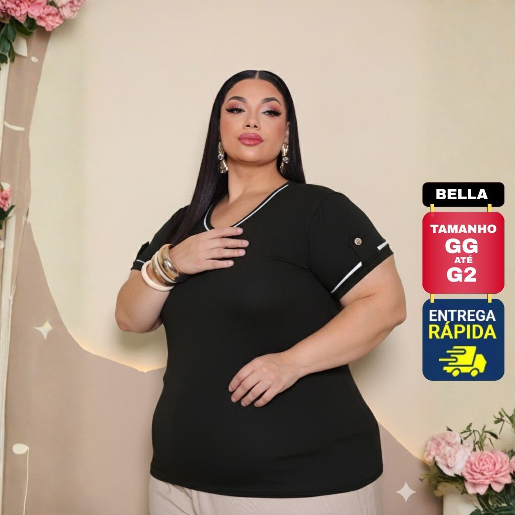 | Blusa Plus Size Feminina Viscolycra Premium Básica Chic Detalhe na ... este produto | R$ 29,99 | 57% | 4.9/5 | 202 |