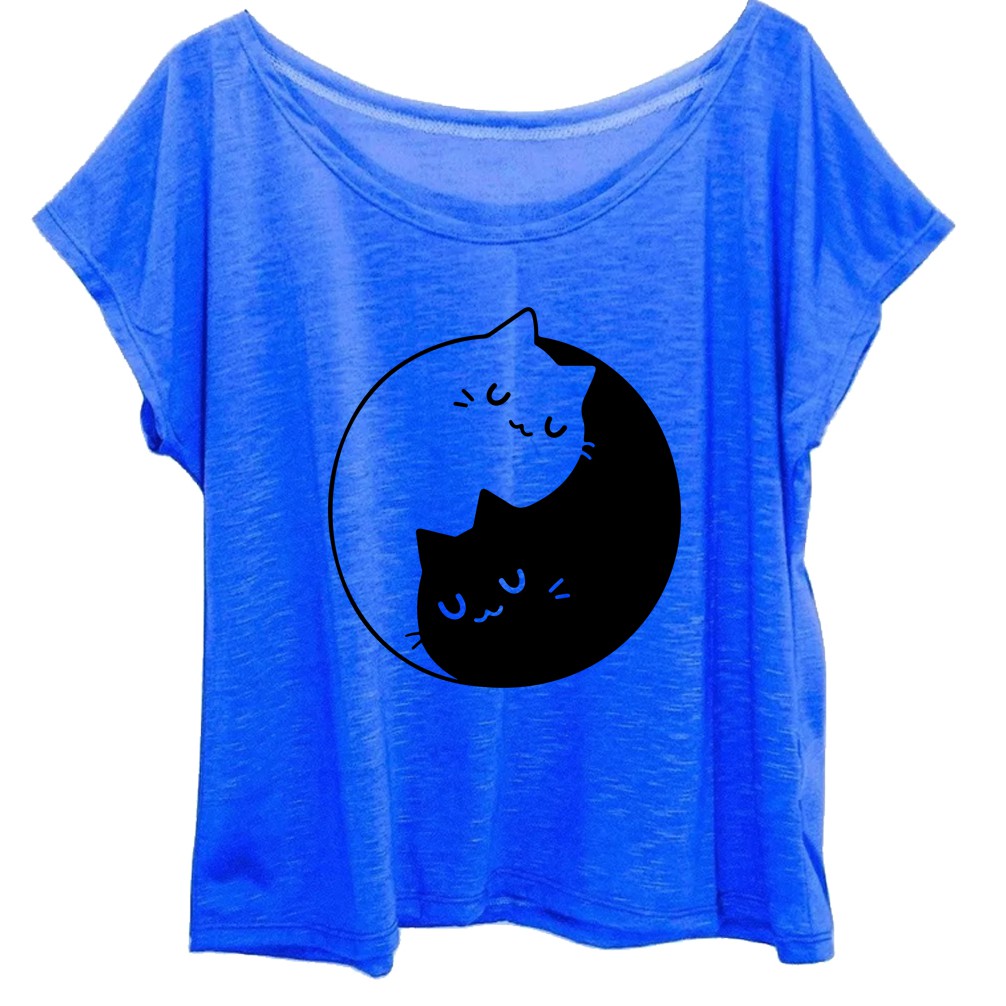 Blusa Plus Size Gato Ying Yang Estampa Feminina Fofa Gatinho Místico