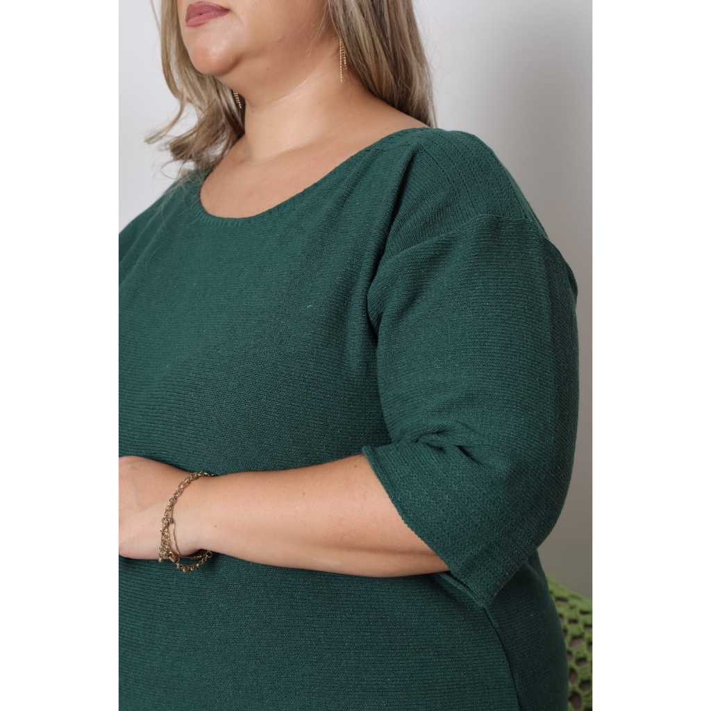 Blusa Plus Size Gola Bordada de Tricot