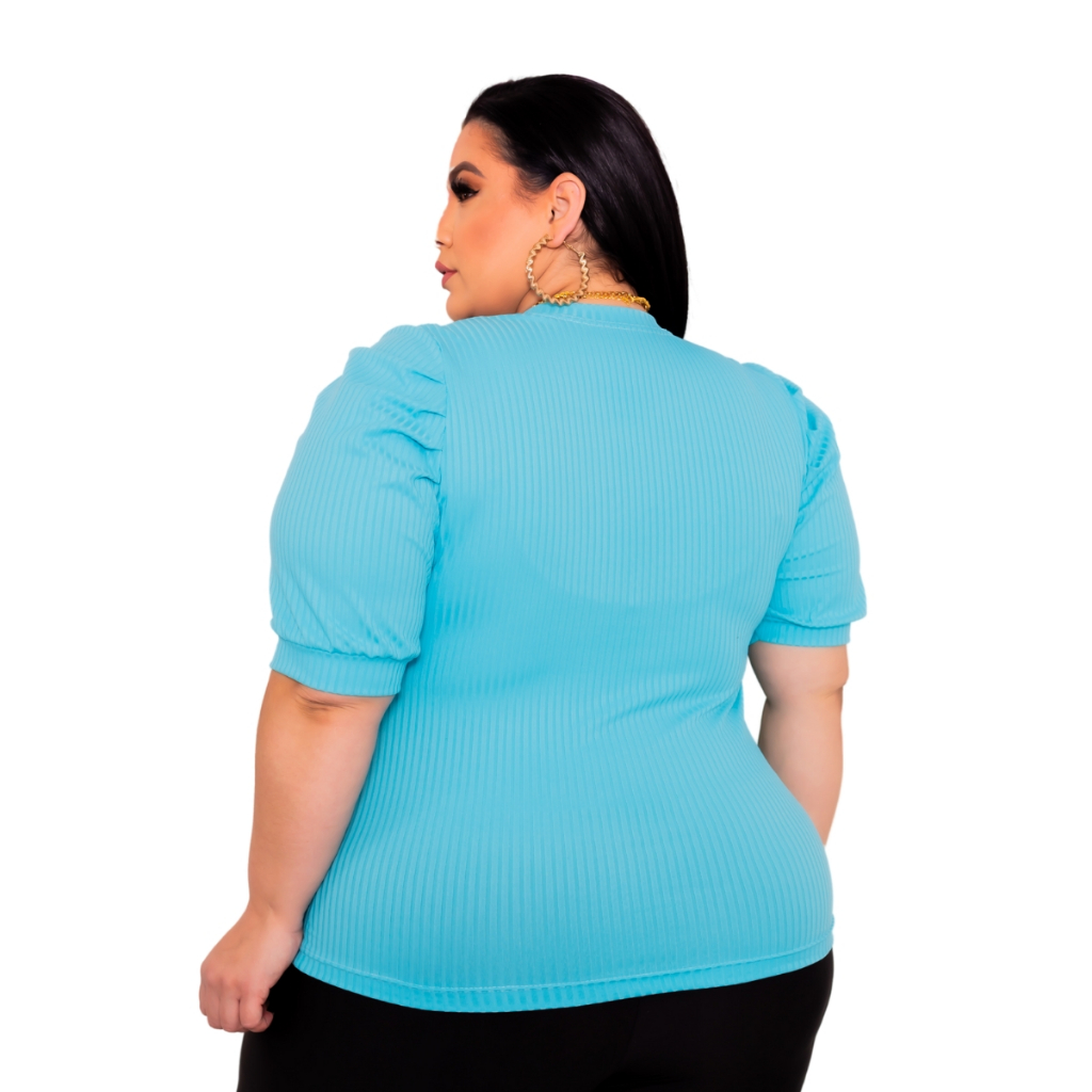 Blusa Plus Size Princesa Bufante Canelada Manga Curta
