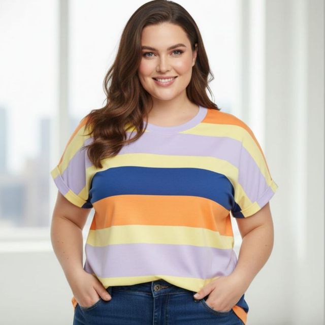 Envio imediato ✨ Blusa Feminina Plus Size Manga Japonesa – Conforto, estilo e caimento impecável!** Perfeita para quem busca uma peça versátil e moderna, esta t-shirt plus size possui estampa listrada em tons quentes e vibrantes, trazendo leveza e estilo ao look. 💡 Detalhes do Produto: * Modelo: Blusa Feminina Plus Size * Estilo: Manga Japonesa * Tamanho: Único * Estampa: Listrada * Caimento: Solto e confortável * Indicado para: Dia a dia, casual, looks modernos e confortáveis 📏 Medidas da Peça (Tamanho Único): Busto:118- 155 cm Cintura Normal: 118- 155 cm Comprimento: 61 cm 🌟 Benefícios: * Tecido leve e gostoso ao toque * Não aperta e não marca * Combina com shorts, jeans, calças claras e looks casuais * Ótimo caimento para vários tipos de corpo * Perfeita para usar en cual quer temporada do ano Perfeito 👌 para uso en Paseio. 🏞 parques y para seu dia dia .un produto ven confortável feito em un Tecido Malha Viscolicra 96% 04 Elastano Fabricação própria Ten dúvida sobre produto pode. Mandar mensagem pelo chat respondendo japido 📦 Conteúdo da Embalagem: 1x Blusa Feminina Plus Size Manga curta Listrada con elastano 96% Viscose 04% Elastano Malha Viscolicra modelo aser usado en ano todo