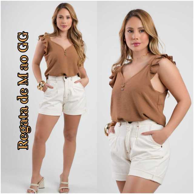 | Blusa Regata Feminina com Babados nas Alças tendência casual Duna este produto | R$ 30,15 | 33% | 4.8/5 | 193 |