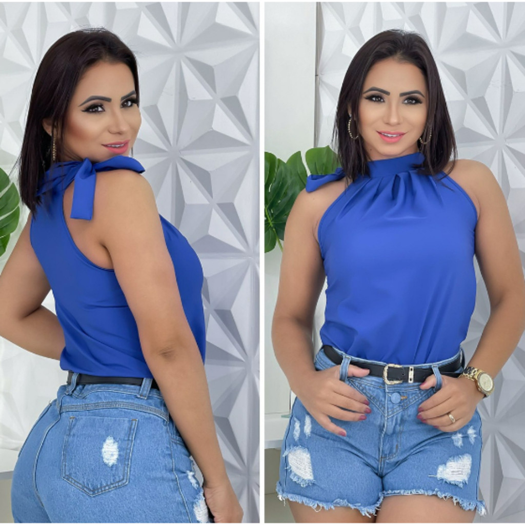 -Blusas de tecido Crepe. -Não possui bojo TAMANHOS: P/M, G, GG M VESTE (38/40); G VESTE (42/44); GG VESTE (46). Tamanho P/M : Busto 97cm Tamanho G : Busto 102cm Tamanho GG : Busto 108cm Do ombro a cintura P e M tem 54 cm, G tem 57 cm, GG tem 59 cm. Pattern:Plain