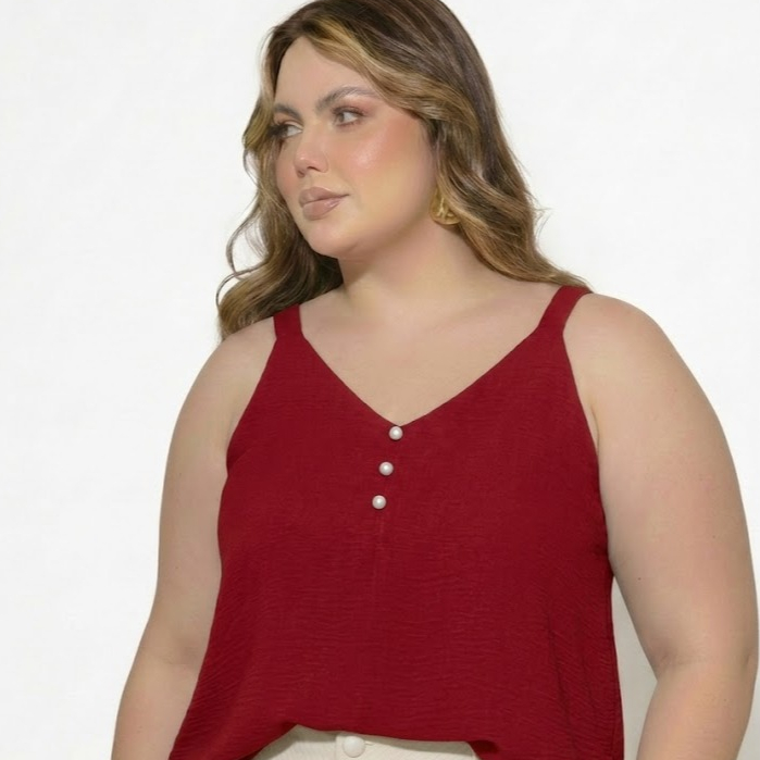 Blusa Regata Feminina Plus Size Alça Larga Botões Pedraria Pérola Blusa Estilosa Duna G GG G1