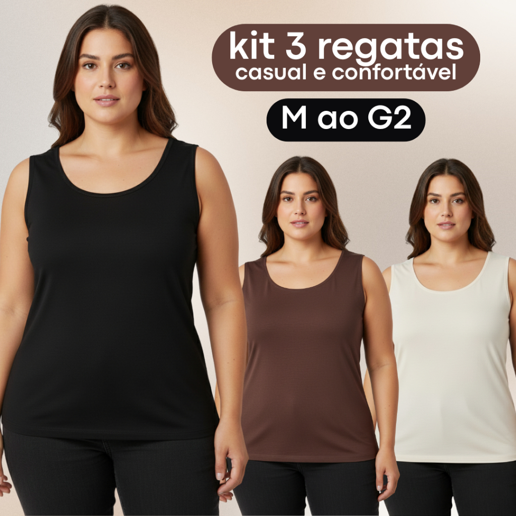 | KIT 2 REGATAS PLUS SIZE | R$ 47,99 | — | 4.7/5 | 117 |
