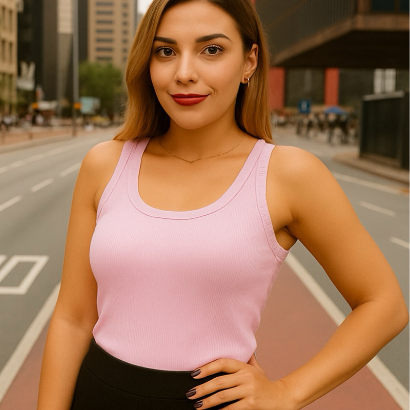 Regata Feminina Ribana Canelada – Conforto e Estilo no Seu Dia a Dia A regata perfeita para quem busca versatilidade e elegância! Confeccionada em ribana canelada de alta qualidade, essa peça combina conforto e sofisticação com um toque de elasticidade que valoriza a silhueta. Seu tecido é composto por 48,5% algodão, 48,5% poliéster e 3% elastano, garantindo um caimento impecável, toque macio e excelente durabilidade. O modelo possui um design clássico, com gola arredondada e acabamento reforçado, ideal para composições casuais ou mais elaboradas. Perfeita para usar sozinha nos dias quentes ou como sobreposição em looks mais elaborados. Destaques do Produto: ✔️ Tecido canelado que se ajusta ao corpo sem apertar ✔️ Mistura de algodão e poliéster que não amassa fácil ✔️ Toque macio e fresco para o dia a dia ✔️ Versátil: combina com jeans, alfaiataria e looks esportivos ✔️ Não perde a modelagem após as lavagens Disponível em diversas cores modernas para você montar produções incríveis em qualquer estação!