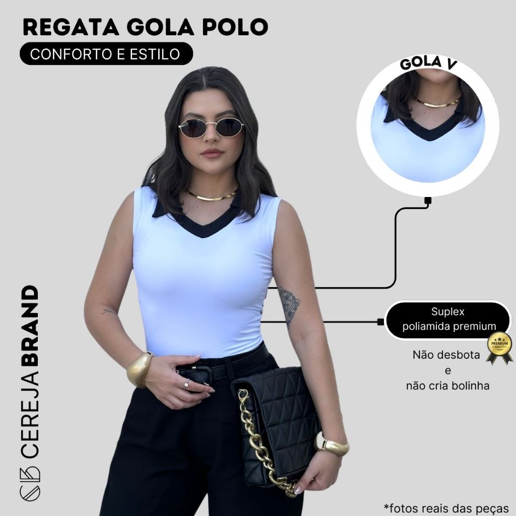 | Blusa Regata Gola Polo Feminina Baby Look Suplex Justinha Estilosa este produto | R$ 42,90 | 61% | 4.8/5 | 2 |