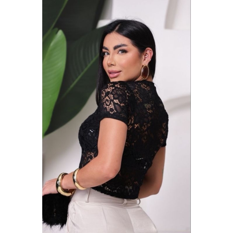 Blusa RENDA femenina transparente elegante social estilo gringa pra festa de balada malha renda