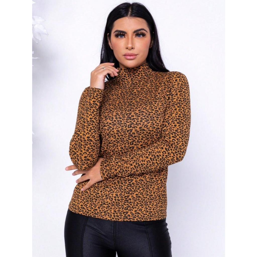 Blusa Segunda Pele Gola Alta Feminina Estampada Animal Print