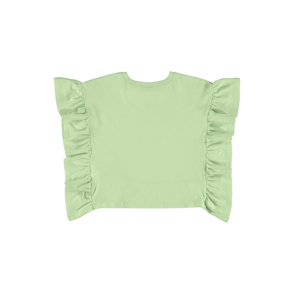 Blusa infantil delicada e charmosa, confeccionada em meia malha para meninas. Possui estampa frontal metalizada com escrita Smile Today, etiqueta personalizada da marca, tornando a peça única e detalhes babados nas laterais e na barra da peça. Autêntica, confortável e charmosa, a nova blusa favorita das meninas.Tecido: Blusa: Meia MalhaComposição: Blusa: 100% AlgodãoDecote/Gola: RedondoModelagem: JustaForro: NãoComprimento das Mangas: Sem MangaInformações Extras: Possui estampa Metalizada.