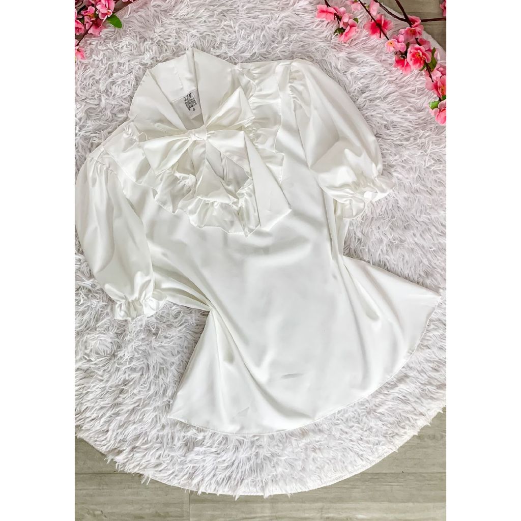BLUSA SOCIAL MANGA CURTA BUFANTE COM BABADO E LAÇO cód 04 MODA FEMININA 174