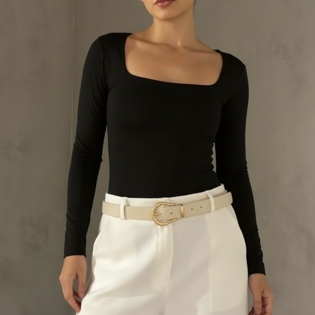Blusa Suplex feminina Manga Longa Decote Gola Quadrada Moda Inverno