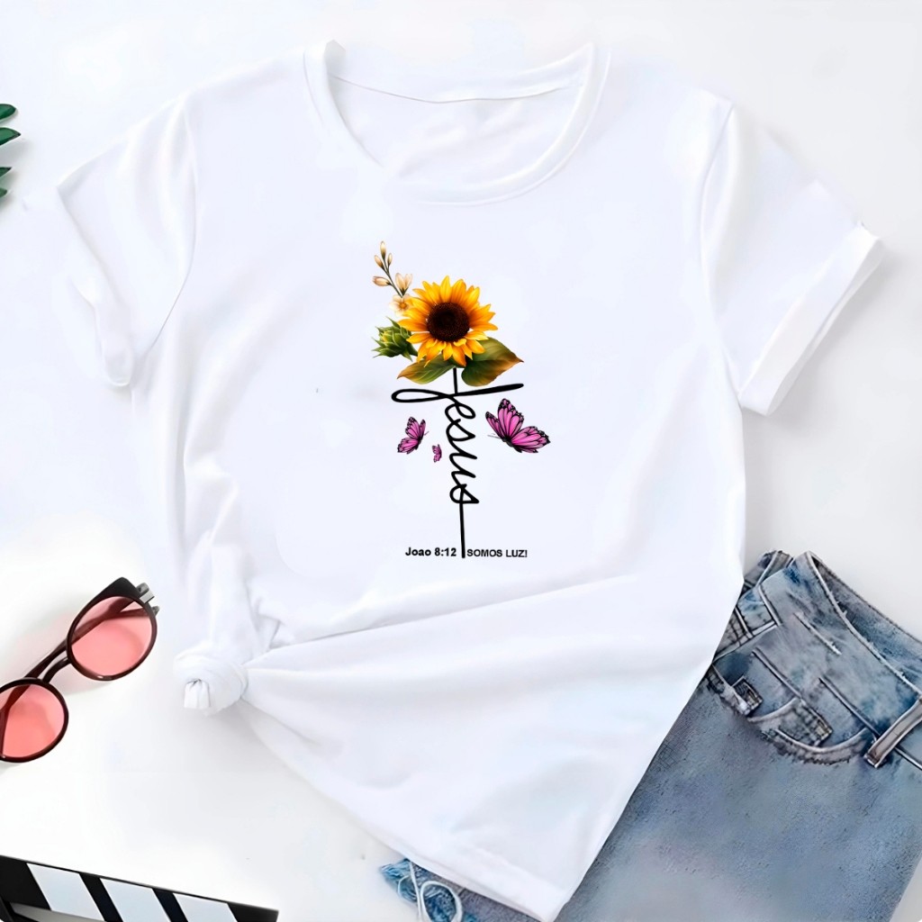 Blusa T-shirt Linda Camiseta Feminina Jesus Cristo Girassol Camisa
