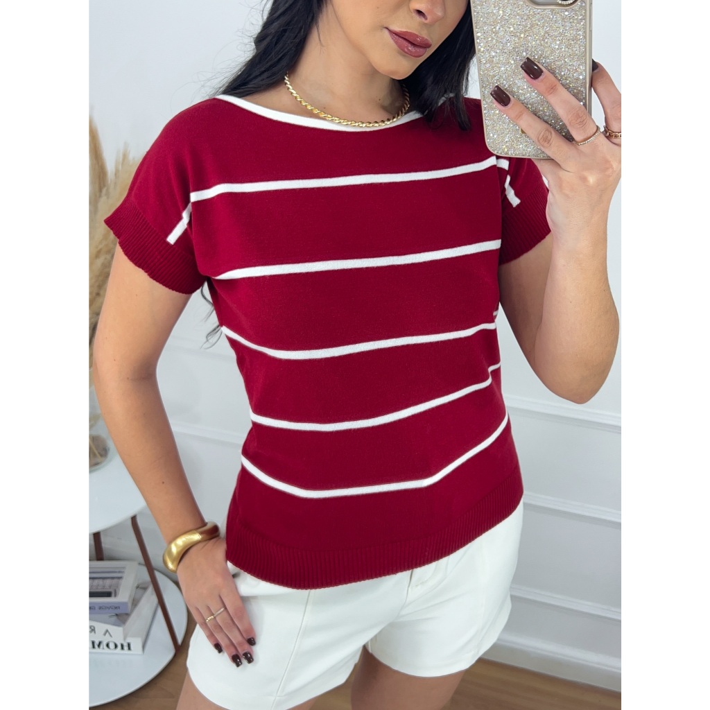 Onde comprar Blusa T- Shirt Listrada Manga Curta Feminina Tricot Elegante Verão?