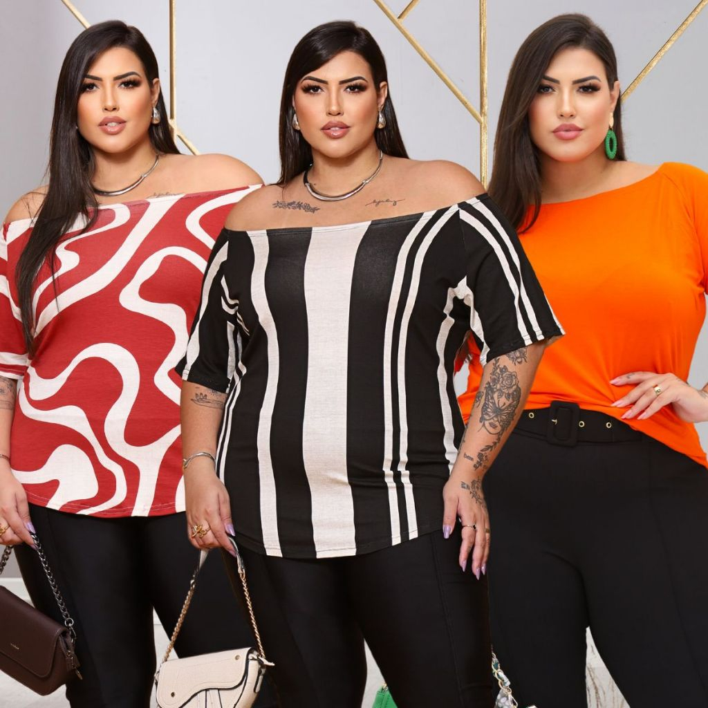Blusa T-shirt Plus size Curve Curvy ombro a ombro academia ciganinha linda do G1 AO G3