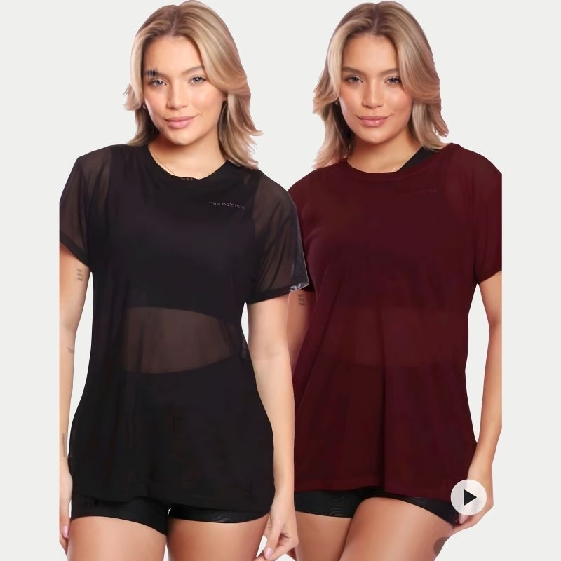 BLUSA T-SHIRT TULE ✅ Cores: Marrom Preto Marsala Branco ✅ Multiuso ( Academia, Balada, trabalho) ✅ Tamanho: M G GG G1 G2 ✅ Tecido estica bom material ⛔ Não passar ferro