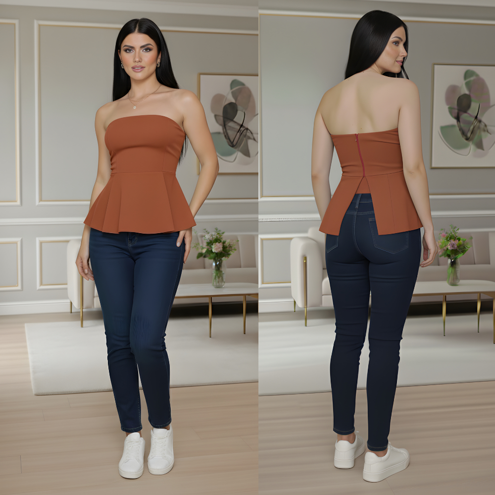 Blusa Tomara que Caia Feminina Alfaiataria com Zíper e Elástico – Moda Casual Elegante