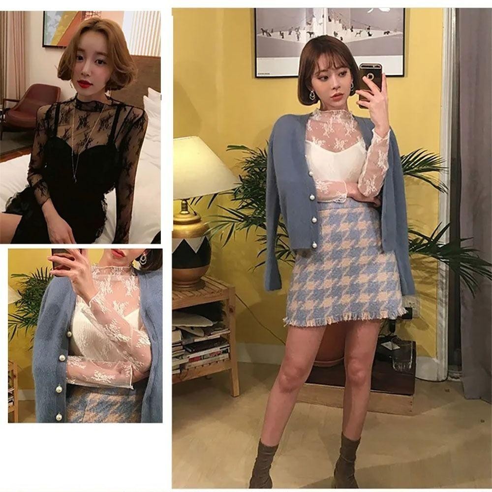 Blusa Transparente DORA , Camisetas Transparentes De Manga Comprida , Malha Preta Moderna ,