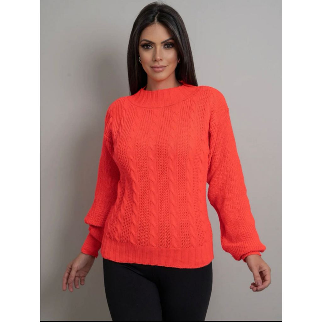 Blusa trico manga longa trançada frente