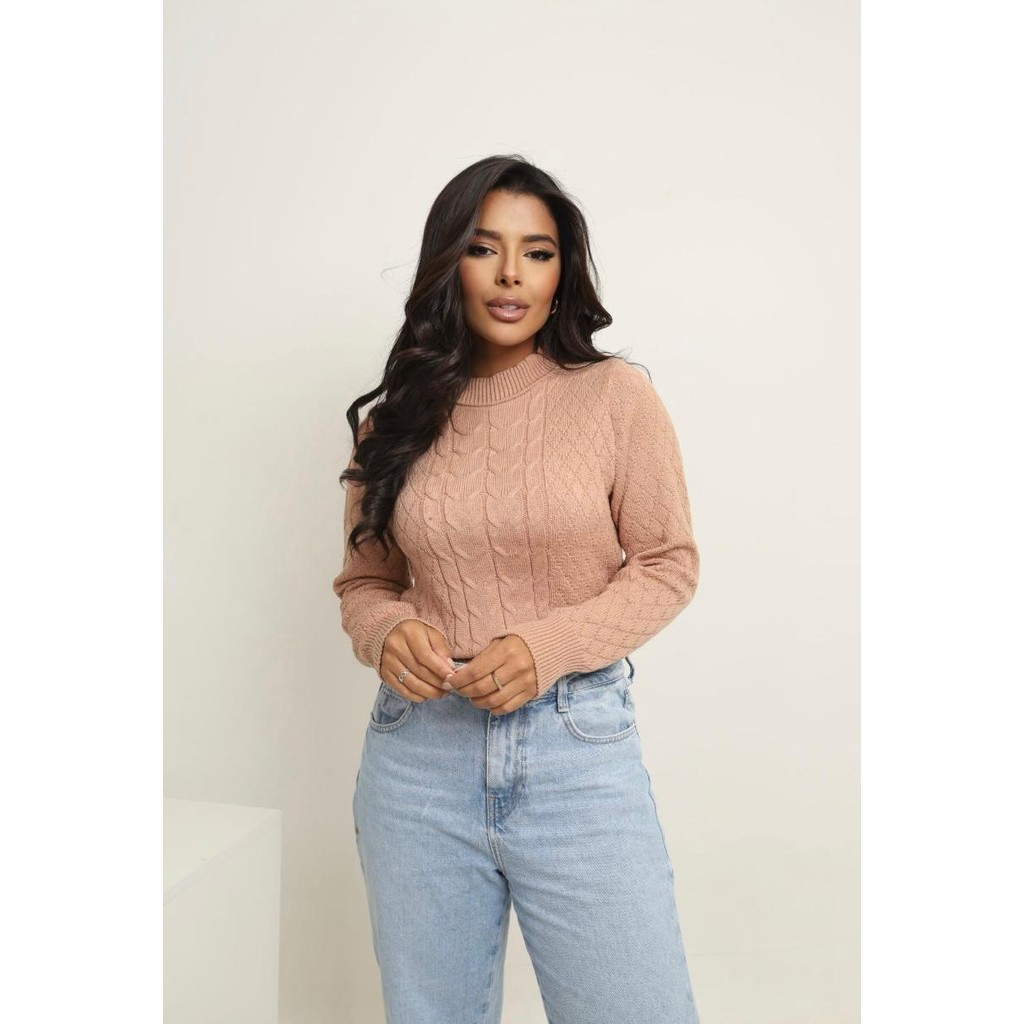 Blusa Tricô Modal Amelia Feminina Manga Longa Básica Tricot Inverno