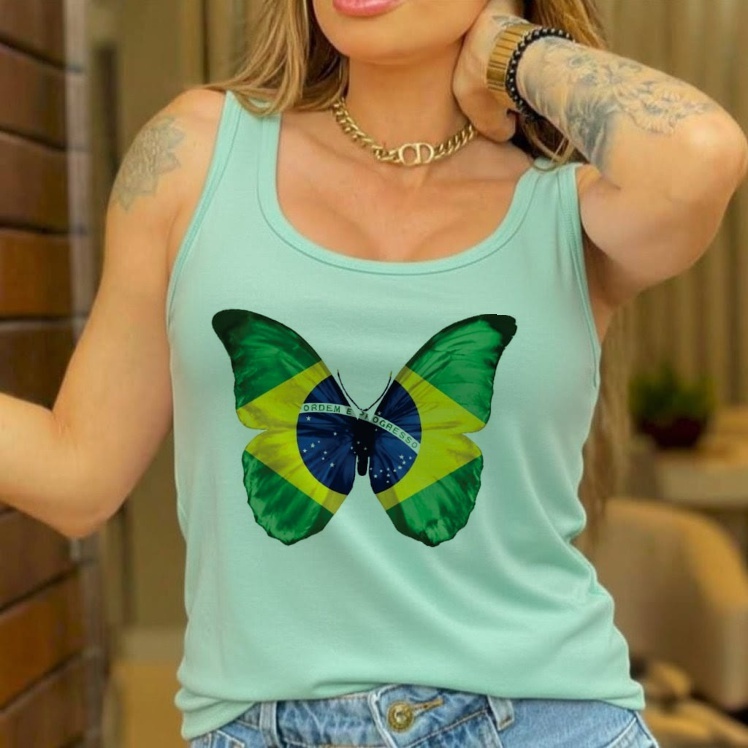 blusa tshirt, Regata, brasil copa do mundo hexa, borboleta bandeira, blusinha estilosa plus size