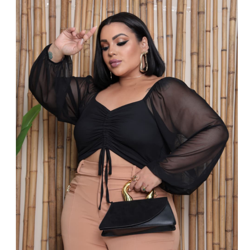 | Blusa Tule Plus Size G1 48 50 Manga Bufante Com Bojo Forrada este produto | R$ 44,99 | — | 4.9/5 | 13 |