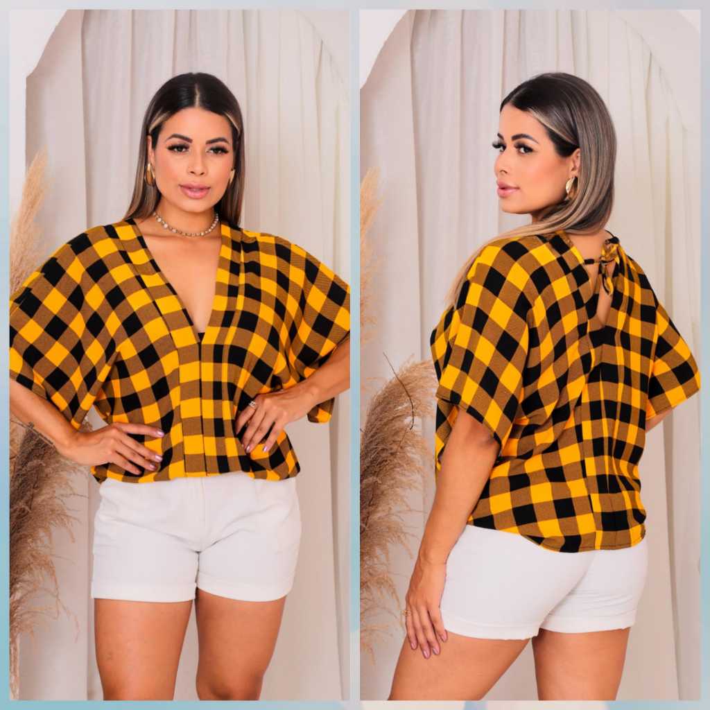 BLUSA XADREZ PLUS SIZE MANGA MORCEGO