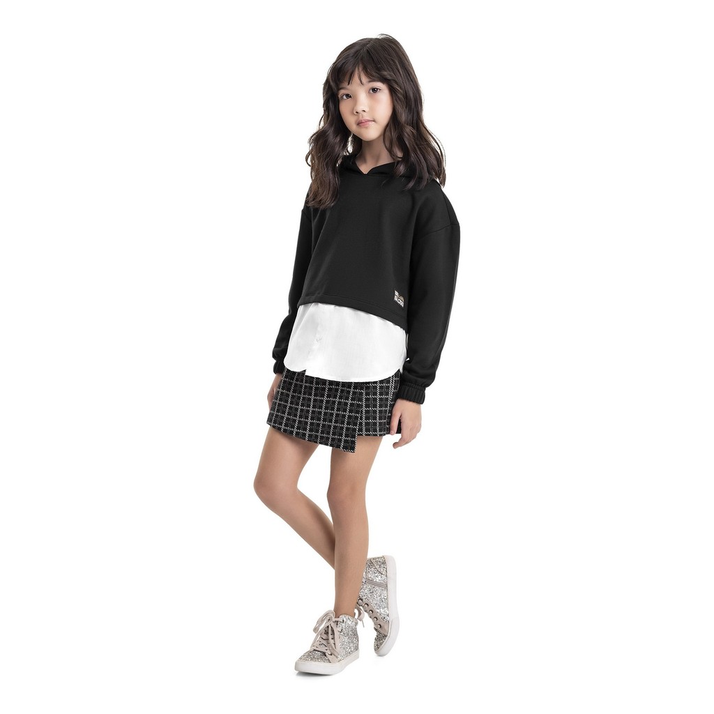 Este blusão juvenil é confeccionado em moletom peluciado e tricoline, materiais quentinhos e ideais para os dias frios de inverno. Com capuz e elástico nos punhos, garante um caimento aconchegante, mantendo o calor necessário. O seu charme principal está no recorte localizado na parte inferior da peça, imitando a sobreposição de uma camisa feita em tricoline. Moderno e estiloso, este blusão é a escolha perfeita para manter-se aquecido com muito estilo durante a estação mais fria do ano.Tecido: MoletomComposição: 50% Algodão e 50% Poliéster | Detalhe Barra: 97% Algodão e 3% ElastanoModelagem: AmplaComprimento Manga: LongaForro: NãoDecote/Gola: Redondo