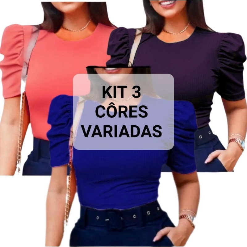 kit 5 Blusas manga bufante em malha canelada, princesa, manga bufante, linda para todas ocasiões, pois combina com qualquer peça. Indispensável no seu guarda-roupa. Tamanho único veste do 38 ao 42 Tecido de qualidade, não fica transparente. Composição do tecido: Malha canelada Corte acinturado, veste melhor e ajuda a modelar o corpo, tecido com boa elasticidade. Não garantimos as mesmas côres da modelo, enviamos 5 cores diferentes, conforme disponibilidade do estoque. Se desejar alguma cor específica após a compra nos informe no campo de mensagens que enviamos conforme solicitado. Trabalhamos com diversas peças e ótimos preço em atacado. Conheça nossa loja clicando em: Ver todos anúncios do vendedor, aproveite adicione itens ao carrinho e economize no frete. Qualquer dúvida estamos a disposição. Nos contate no campo de perguntas, será um prazer atendê-lo (a) Aguardamos sua compra!