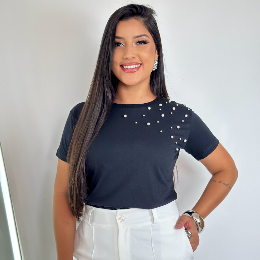 Blusa com Pérolas . As nossas T-shirts são produzidas em malha 100% algodão, fio 30.1 penteado, uma excelente malha. Já a estampa é feita em Silk screen, não desbota e nem racha. Gola: Ribana Canelada Costura Dupla Reforçada Ombro á Ombro.. T-shirt Feminina extremamente confortável que se modela perfeitamente ao corpo. Várias cores para todos os gostos. Pode ser usada com jeans, saias, shorts .. e em qualquer ambiente e ocasião. Ótima para Primavera/Verão mas podendo ser usada também em outras épocas do ano. Não deixe de ter essa peça no seu guarda-roupa! DETALHES DO PRODUTO: * Imagem real do produto nas fotos * Excelente preço e qualidade * Direto da fábrica * Tamanhos do P ao GG * 100% algodão fio 30.1 penteado fabricado em máquinas eletrônicas de ultima geração. * Temos A PRONTA ENTREGA. * Compra 100 % segura ENVIO / RECEBIMENTO * Enviamos seu pedido em até 24h úteis após a aprovação do pagamento. * A entrega do seu pedido é realizada em embalagens lacradas pela a nossa equipe interna. * Caso constate embalagem violada, recuse o recebimento do pedido e entre em contato conosco pelo chat. * Agradecemos imensamente a sua avaliação após receber o seu produto. TABELA DE MEDIDAS : TAMANHOS BUSTO COMP. LARG. MANGA. P (34-36) 88 CM 66 CM 93 CM 25 CM M (38-40) 95 CM 69 CM 109 CM 26 CM G (42-44) 109 CM 71 CM 115 CM 27 CM GG (44-46) 116 CM 73 CM 120 CM 28 CM Lembrando que nosso produto é muito bem fabricado, então fique tranquila , você irá receber produto de qualidade!! Não deixe de dar uma olhada em nossa loja , temos muitas opções disponiveis . QUALQUER DÚVIDA ESTAMOS A DISPOSIÇÃO, BOAS COMPRAS!! ****DICAS E CUIDADOS COM A SUA T-SHIRT**** De preferência lavar a mão. Se lavar na máquina, virar a camiseta do lado avesso. Não deixar de molho. Lavar com sabão neutro e não usar alvejante ou cloro. Não utilizar maquina de secar. Deixe secar á sombra. Não passar a estampa.