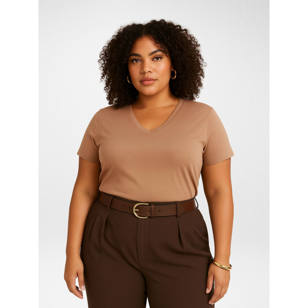 Blusas Femininas Plus Size Básica Casual Manga Curta Gola V Algodão Roupas Femininas