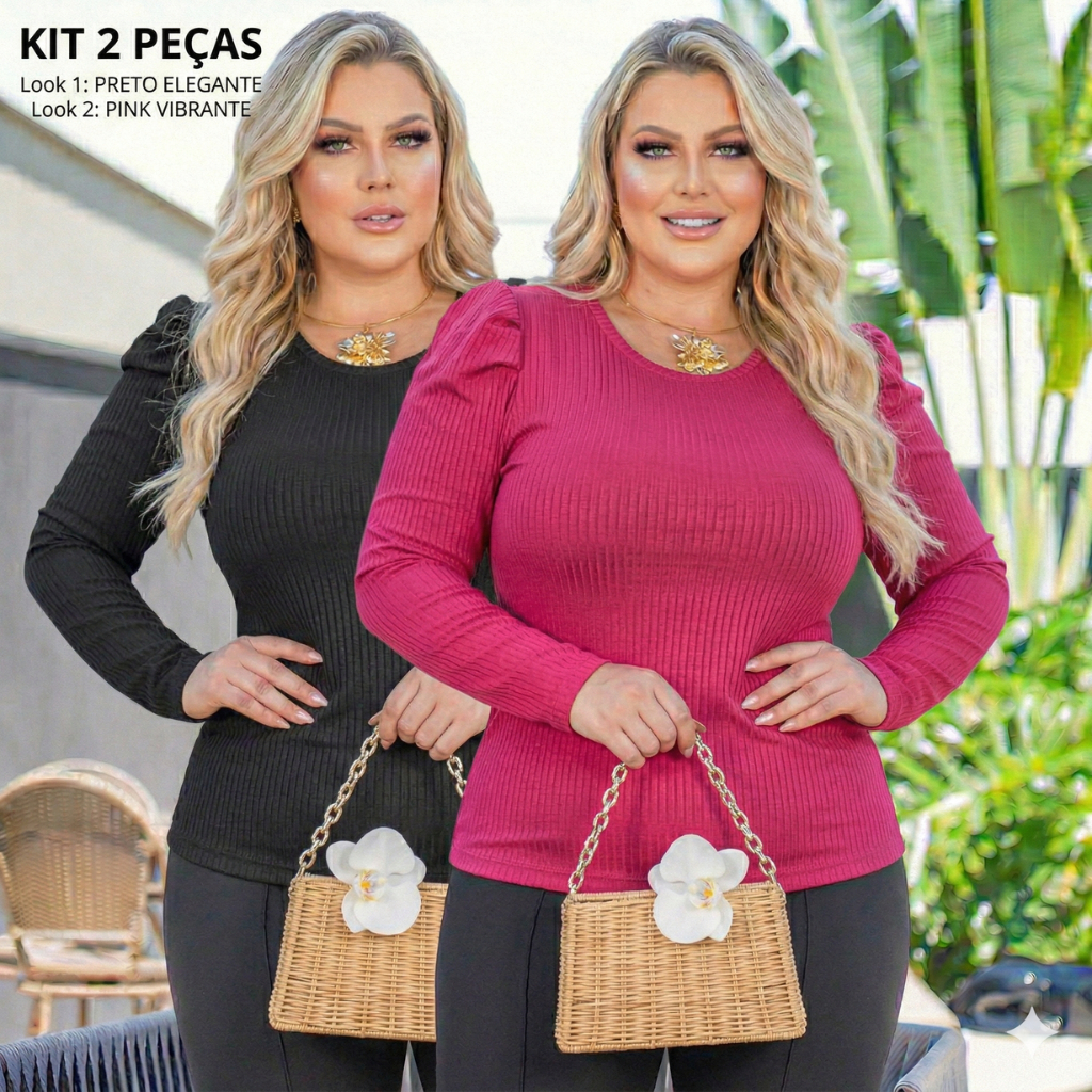 Blusas Manga Longa Plus Size Feminina Kit C/2 Unidade G1 G2 G3 G4