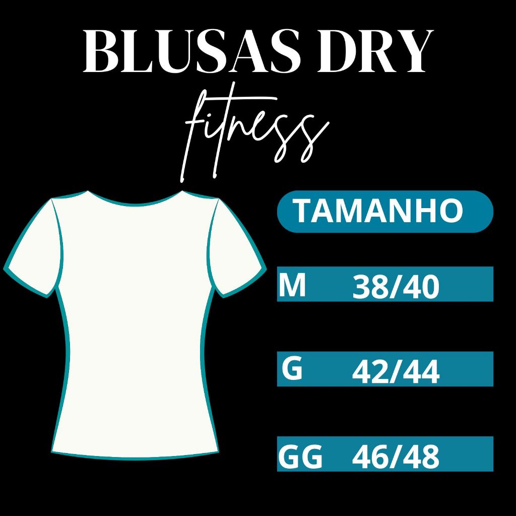 Abaixo deixamos todas informações do das blusas de malha Dry Fit , caso tenha alguma dúvida entre no campo de perguntas!!! O lançamento da blusas femininas amada das blogueiras e queridinhas por todas veio para arrasar com tudo. as blusas foi desenvolvida com alta tecnologia na malha de Dry Fit para que você ao usar tenha um conforto e leveza nos seus movimentos, com a a malha de Dry Fit as blusas se adapta em qualquer tipo de corpo deixando uma modelagem incrível!!! Sobre o Malha: As blusas feminina mais usado no verão para a confecção de roupas Fitness por ser leve, fresquinha e com um bom caimento. Não se trata de uma malha transparente. As cores são sempre tendências e deixam as peças mais charmosas. Informações Gerais: - A malha estica - As blusas são enviados conforme o tamanho e estampa escolhida