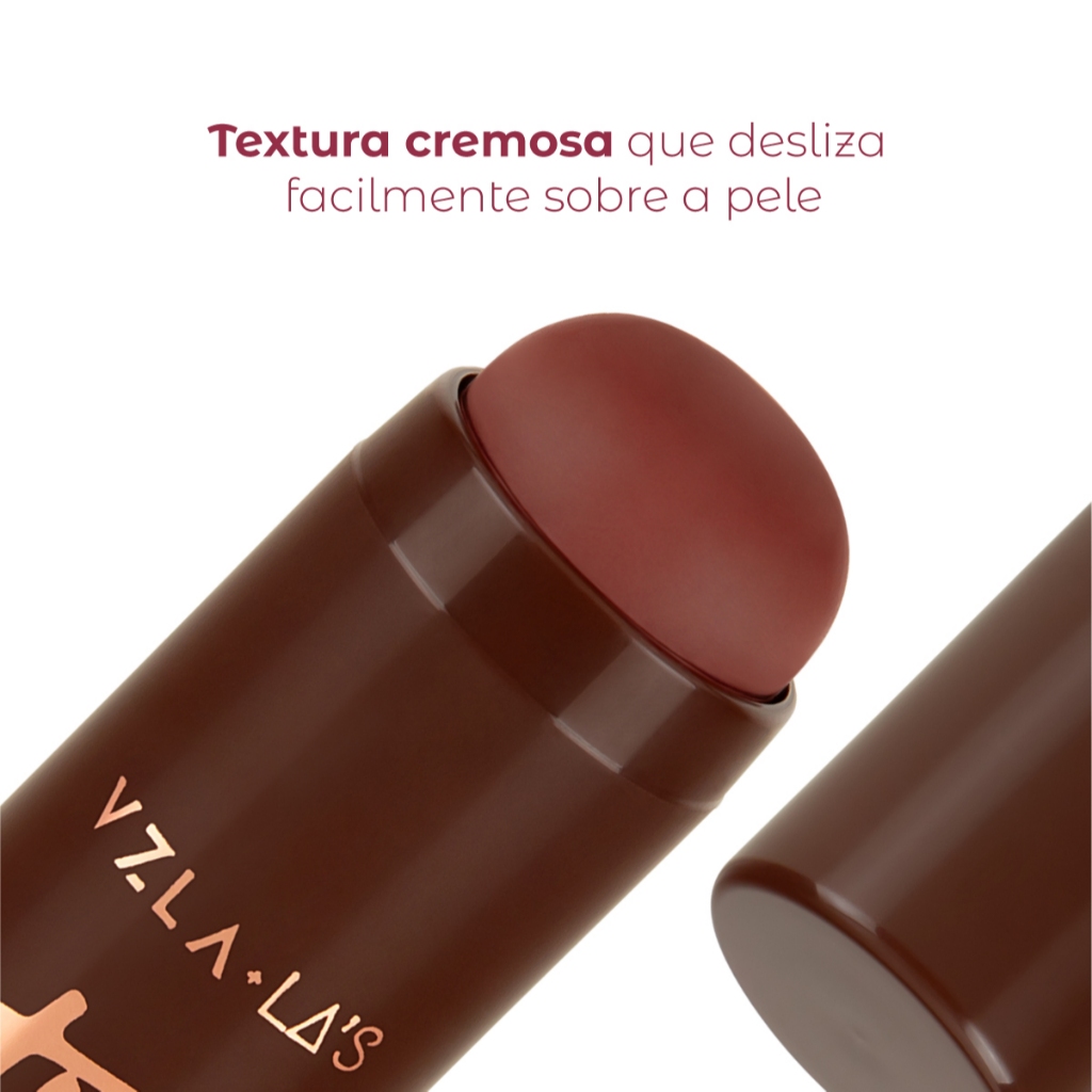 Blush Stick Red Mocha Cremoso Bastão Vizzela + La's Realce suas maçãs do rosto com um toque de cor sofisticado e natural que dura o dia todo! O Blush em Stick Red Mocha Vizzela + La's foi criado para trazer praticidade e um efeito incrível à sua maquiagem. Com uma textura cremosa que desliza suavemente sobre a pele, ele é extremamente fácil de esfumar, garantindo um acabamento natural, como um tint duradouro. Após ser espalhado, o produto seca completamente, fixando a cor sem deixar qualquer resíduo oleoso ou pegajoso, o que o torna ideal para quem busca beleza com alta performance. O que você vai receber: 1 Blush em Stick Vizzela La's Red Mocha Cremoso Edição Especial 7g. Produto 100% Original com Nota Fiscal. Principais benefícios: Este blush em stick oferece uma cor intensa e vibrante que realça as maçãs do rosto, proporcionando um aspecto saudável e radiante. Sua fórmula cremosa desliza fácil para uma aplicação rápida e prática, além de garantir um efeito tint de longa duração, mantendo seu look impecável o dia todo. Diferenciais e Tecnologia: A fórmula deste stick é Vegana, Cruelty-Free (certificado PETA) e Dermatologicamente Testada, respeitando você e o meio ambiente. Desenvolvido em Edição Especial em parceria com a La's Clothing, possui uma textura cremosa que não deixa resíduos oleosos após secar, unindo maquiagem e moda com tecnologia de fixação. Como Usar: Gire a base do stick para expor uma pequena quantidade do produto. Aplique o blush diretamente nas maçãs do rosto, começando pela parte central e subindo em direção às têmporas. Em seguida, utilize a ponta dos dedos, um pincel ou uma esponja de maquiagem para esfumar suavemente, garantindo um acabamento uniforme e natural. Para intensificar a cor, repita a aplicação em leves camadas. #DicaDeAmiga Para um look completo e harmonioso, use o Blush Stick não só nas maçãs do rosto, mas também aplique uma pequena quantidade nas pálpebras (como sombra) e na ponta do nariz e esfume bem. Isso cria um efeito 'sun-kissed' super natural e moderno. VIZZELA Somos uma marca 100% brasileira, vegana, cruelty-free (certificada pelo PETA) e com fórmulas incríveis. Maquiagem que te deixa linda e faz bem para o planeta! Garanta já o seu e arrase com a qualidade Vizzela!
