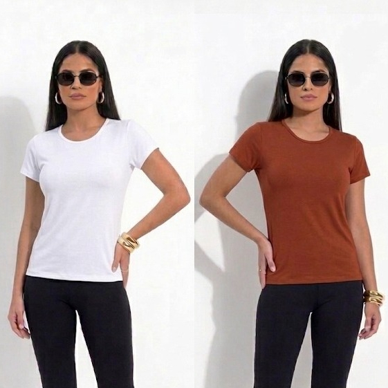 Blusinha Básica Feminina Viscolycra Premium - Conforto e Versatilidade para o seu Dia a Dia! Sabe aquela blusinha curinga que combina com tudo e que você não quer mais tirar do corpo? É essa! Perfeita para montar looks casuais, ir ao trabalho ou até mesmo para o treino, garantindo liberdade de movimento e muito estilo. Feita em Viscolycra de alta qualidade, ela tem o toque macio, é fresquinha e se adapta perfeitamente ao formato do seu corpo, valorizando a silhueta sem apertar. POR QUE ESCOLHER A NOSSA BLUSINHA? Tecido Premium: 95% Viscose e 5% Elastano (A verdadeira Viscolycra). Caimento Perfeito: Modela no corpo, estica muito bem e não deforma. Durabilidade: Não dá bolinha, não desbota e tem costura reforçada. Versátil: Gola redonda clássica e manga curta, ideal para qualquer ocasião. Não é transparente: Gramatura ideal para você usar com tranquilidade. TABELA DE MEDIDAS: P (Veste 36/38): Busto: 76cm | Comprimento: 56cm M (Veste 40): Busto: 80cm | Comprimento: 58cm G (Veste 42): Busto: 86cm | Comprimento: 60cm GG (Veste 44/46): Busto: 92cm | Comprimento: 62cm ENVIO RÁPIDO E SEGURO! Todos os nossos produtos estão disponíveis a pronta entrega. Preparamos o seu pedido com todo o cuidado e enviamos o mais rápido possível para que chegue rapidinho até você. Dúvidas? Pode chamar a gente no chat! Estamos sempre à disposição para ajudar.