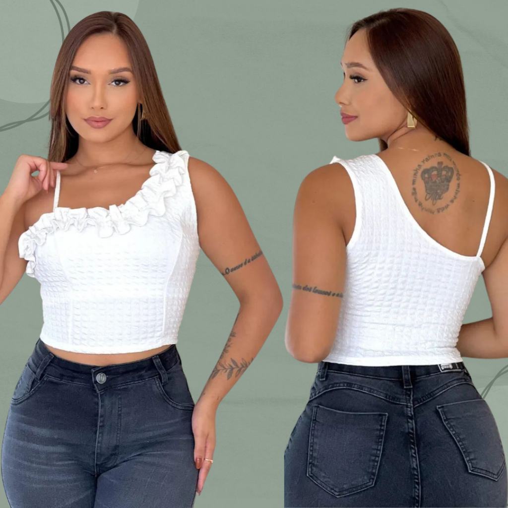 Seja bem vindo DESCRIÇÃO *TECIDO Buble *MODELO Cropped o cropped tem bojo também tem forro também tem babado na frontal poso também possui elástico *TAMANHO UNICO VESTE DO 34 AO 40 *Qualquer dúvida nos chame pelo chat , Será um prazer atende-la !!
