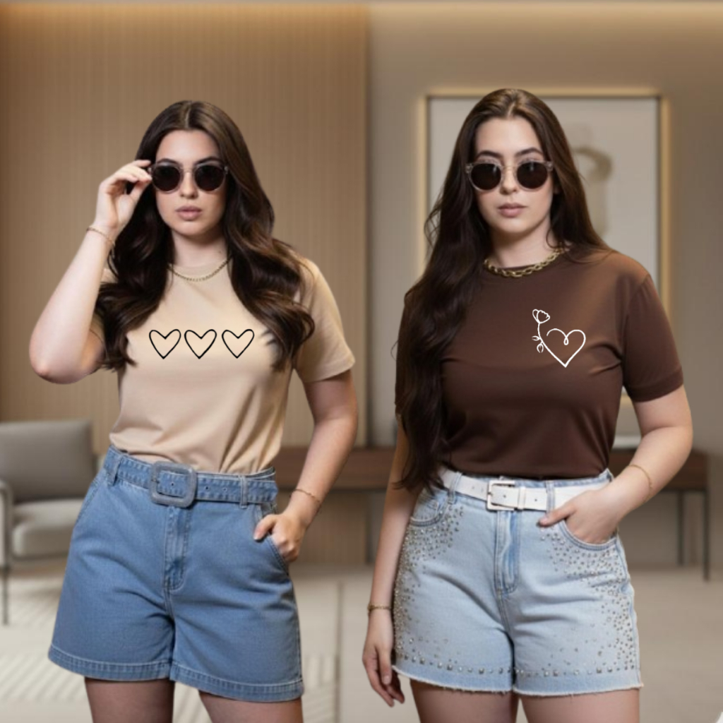 Blusinha Feminina Estilosa T-Shirt Coração Tendência Camiseta 100% Algodão Envio Imediato
