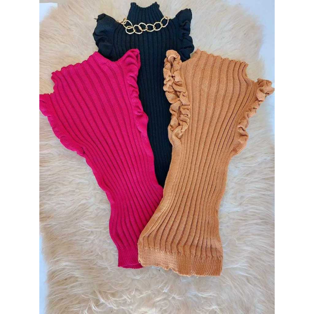 Blusinha Feminina Garrafinha / Tricot Canelado / Babado / Blusa Feminina envio imediato