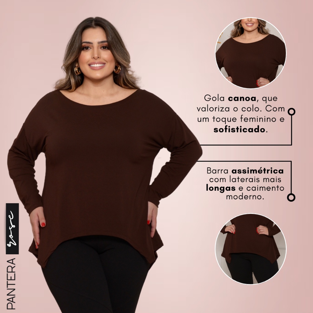 Blusinha Feminina Manga Longa Inverno GG A G5 Camisa Plus Size Soltinha Elegante