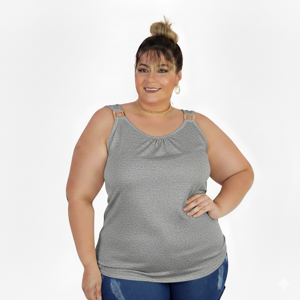 Blusinha feminina plus size regata com detalhe de fivela estilosa moda primavera verão