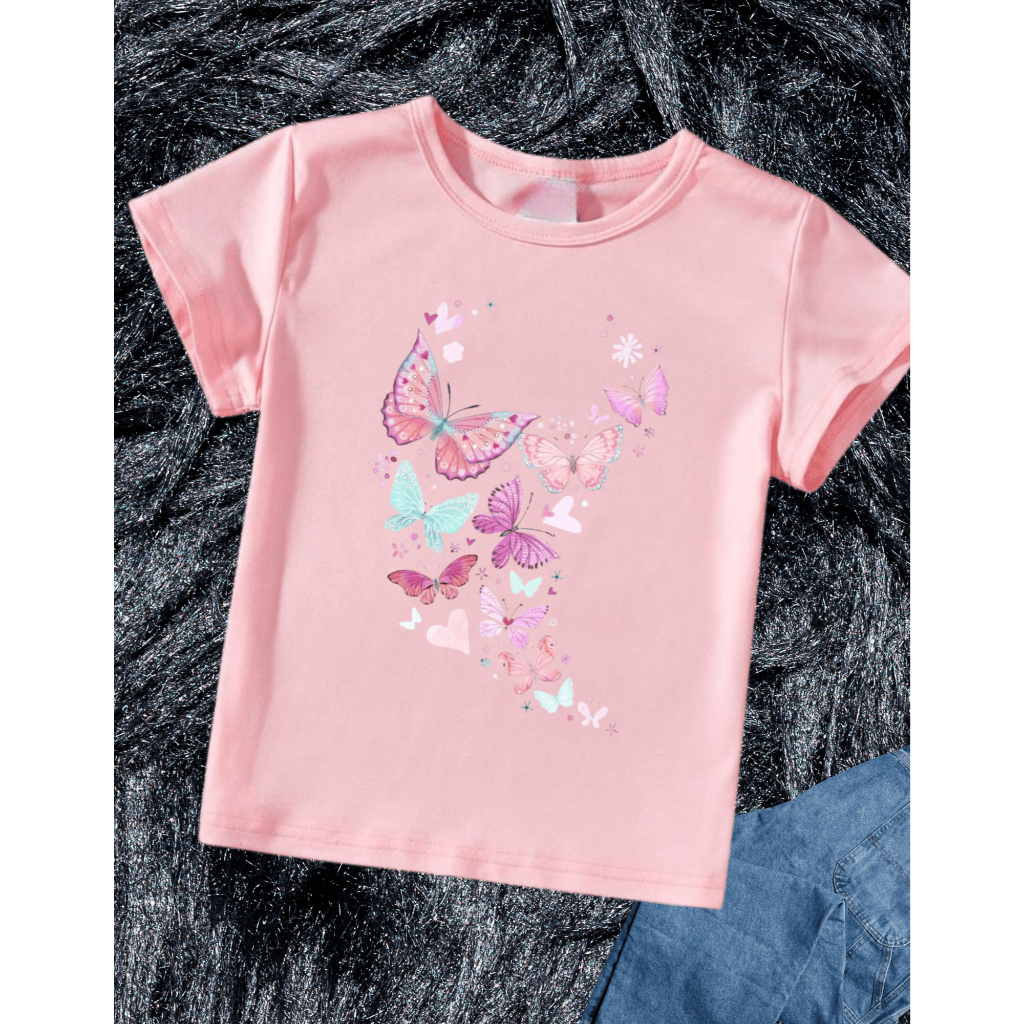Blusinha infantil e juvenil menina, Borboletas Claras,100% algodão,Camiseta feminina,moda infantil Preta