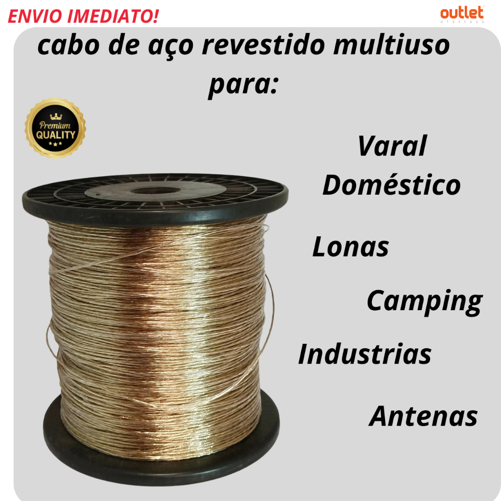 Bobina Cabo De Aço Revestido 100m Varal Reforçado sustentação de antenas lonas esteiras teares maritimo