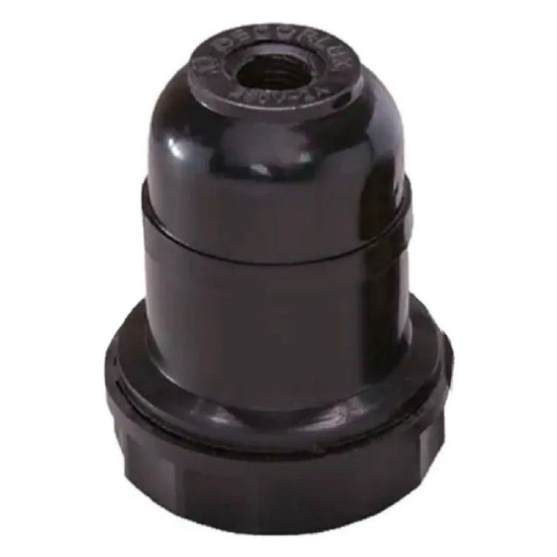 Soquete p/ Abajur Termoplástico com Rosca Preto e Branco E27 O soquete pendente é ideal para ser utilizado com lâmpadas incandescentes, fluorescentes compactas e lâmpadas LED - Quantidade: 1 peça - Corpo em PE (polietileno) - Contato e bornes em latão - Possui terminais tipo bornes para conexão dos fios - Terminal para fio até 2,5mm² - Temperatura máxima: 70°C - Corrente máxima 4A - Potência máxima: 100W - Uso em instalações de abajures - Cor: preto e branco