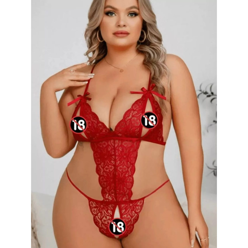 Body Apessadinha Plus Size De Renda Regulável Com Aberturas nas Partes Íntimas Lingerie Sensual Sexy Dia Dos Namorados