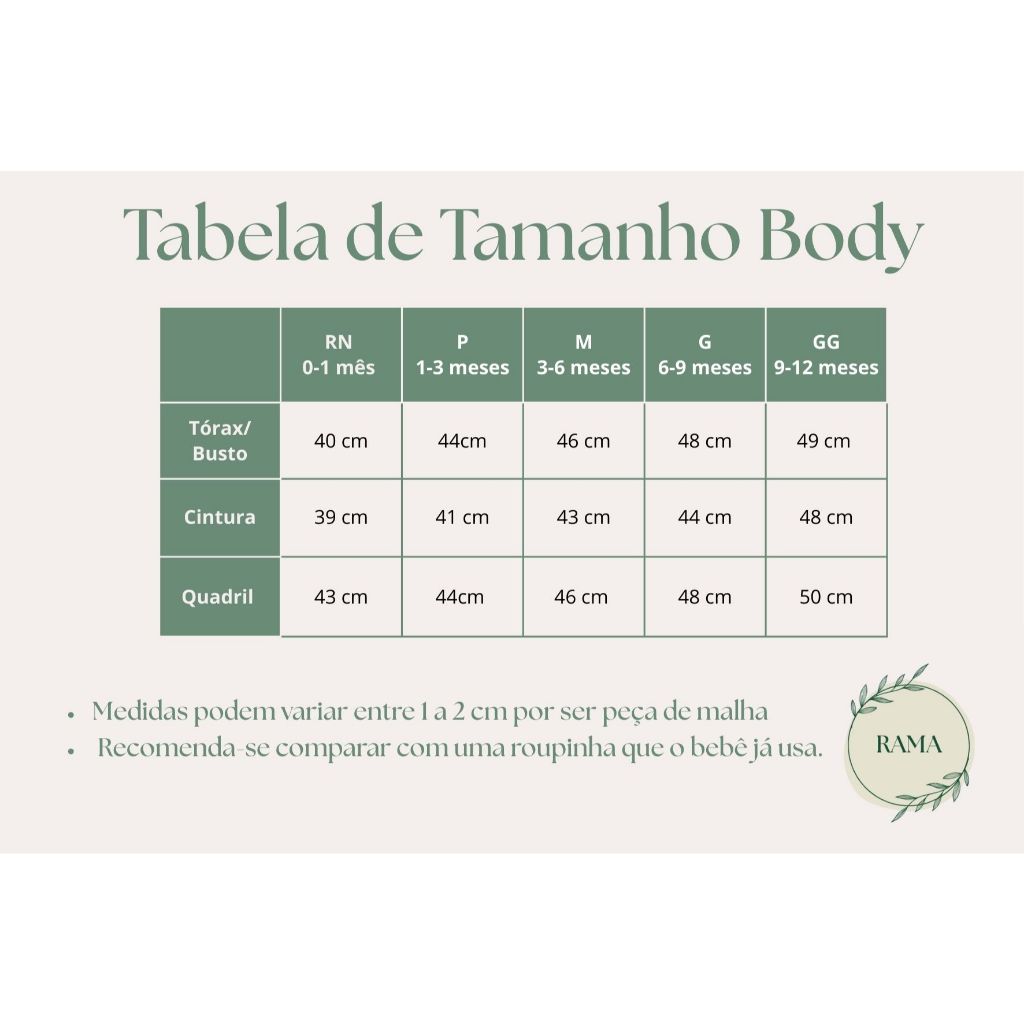 🌿 RAMA Baby – Conforto que floresce desde o primeiro dia. Apresentamos nosso body estampado “Por Esse Filho Eu Orava”, feito especialmente para celebrar esse momento tão especial. Perfeito para ensaios, presentear e registrar memórias lindas do seu bebê. 👶 DETALHES DO PRODUTO • Body 100% algodão • Toque macio e confortável • Estampa em alta qualidade • Manga curta e manga longa • Botões de pressão resistentes • Modelagem confortável para o bebê se movimentar 🎨 ESTAMPA Frase: “Por esse filho eu orava” Estilo: delicado, elegante e significativo 📏 TAMANHOS DISPONÍVEIS • RN – 0 a 1 mes • P – 1 a 3 meses • M – 3 a 6 meses • G – 6 a 9 meses • GG – 12 a 18 meses 🎨 COR • Branco