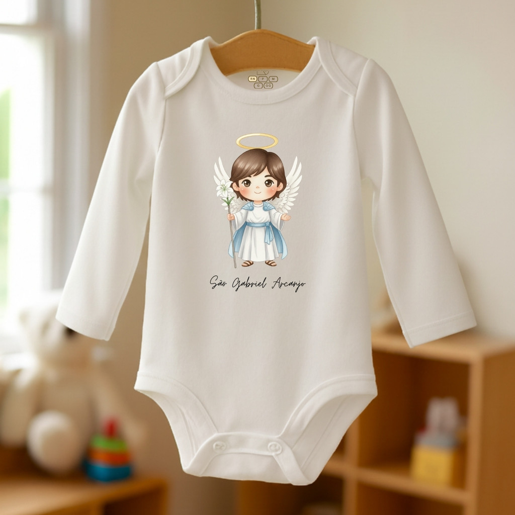 Body Bebê Anjos do Senhor Infantil Religioso Criança Macacão Católico São Miguel Rafael Gabriel