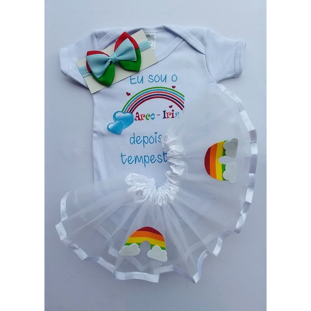 Body Bebe Arco Ires Fantasia Mesversário/Kit Temático Menina
