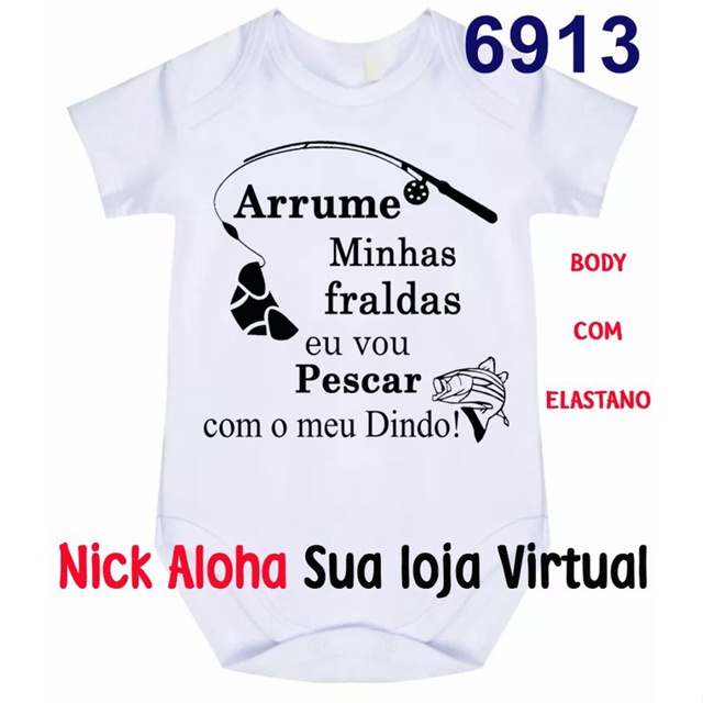 | Body Bebê Arrume Minhas Fraldas Eu Vou Pescar Com O Meu Dindo Cód 6913 este produto | R$ 26,46 | 2% | 4.9/5 | 4 |