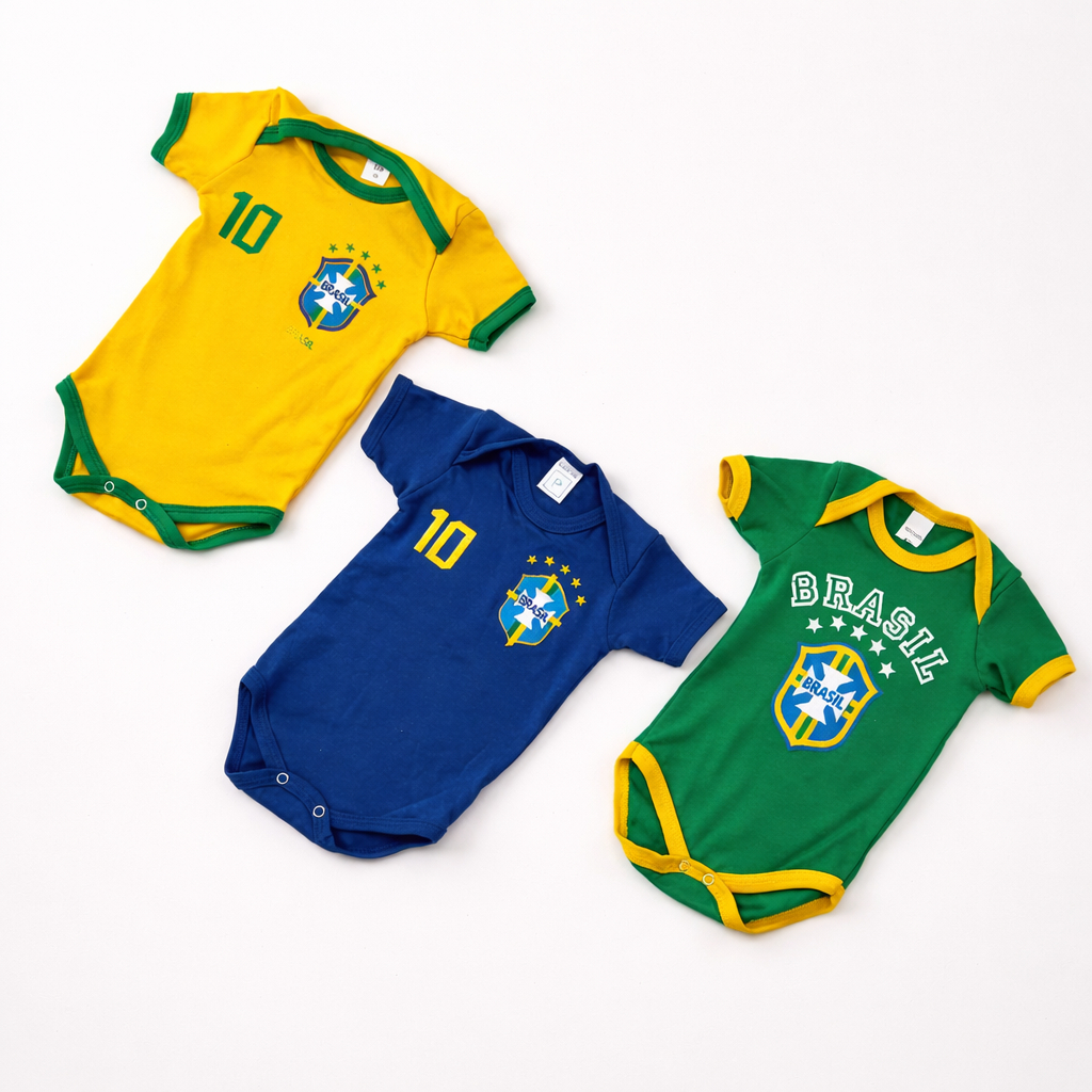 Deixe seu bebê no clima da torcida com o Body Brasil infantil. Ideal para Copa, jogos, ensaios fotográficos e momentos especiais em família. CORES DISPONÍVEIS: • Verde • Azul • Amarelo TAMANHOS: • P • M • G CARACTERÍSTICAS: • Body manga curta • Estampa temática Brasil • Gola americana para facilitar na hora de vestir • Botões de pressão entre as pernas • Tecido macio e confortável • Ótimo caimento no corpo do bebê INDICAÇÃO DE USO: Perfeito para dias de jogo, Copa do Mundo, eventos esportivos, passeios e fotos temáticas. Produto confortável, estiloso e fácil de vestir. Escolha a cor desejada no momento da compra.